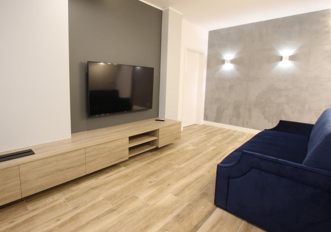 Apartament typu Deluxe. The fireplace is the standout feature of this apartment. This air-conditioned apartment includes 1 living room, 1 separate bedroom and 1 bathroom with a shower. In the well-fitted kitchen, guests will find a stovetop, a refrigerator, a dishwasher and kitchenware. The apartment has tiled floors, a seating area with a flat-screen TV, a washing machine, a coffee machine as well as city views. The unit has 2 beds. Apartament - 4 osobowy. Powierzchnia pokoju ok.: 55 mkw.