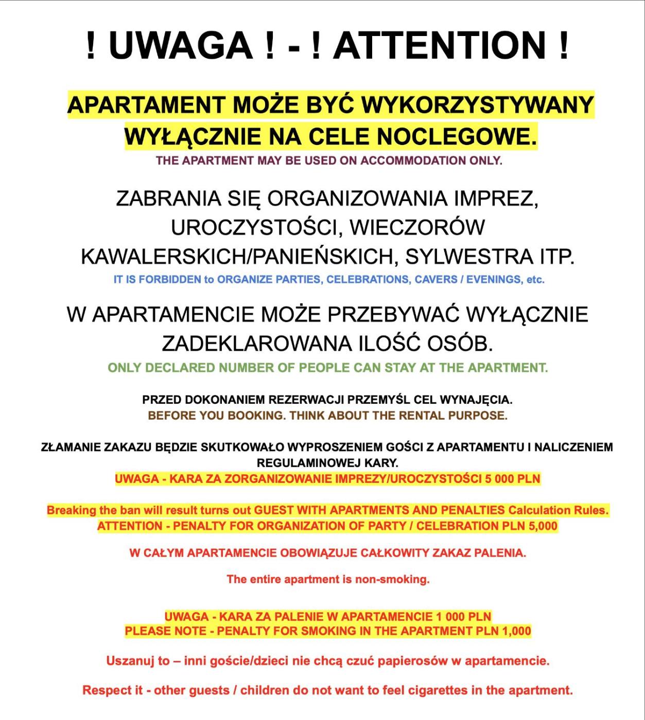 Obiekt usytuowany jest w dzielnicy mieszkaniowej, w związku z czym Goście proszeni są o zachowanie ciszy.