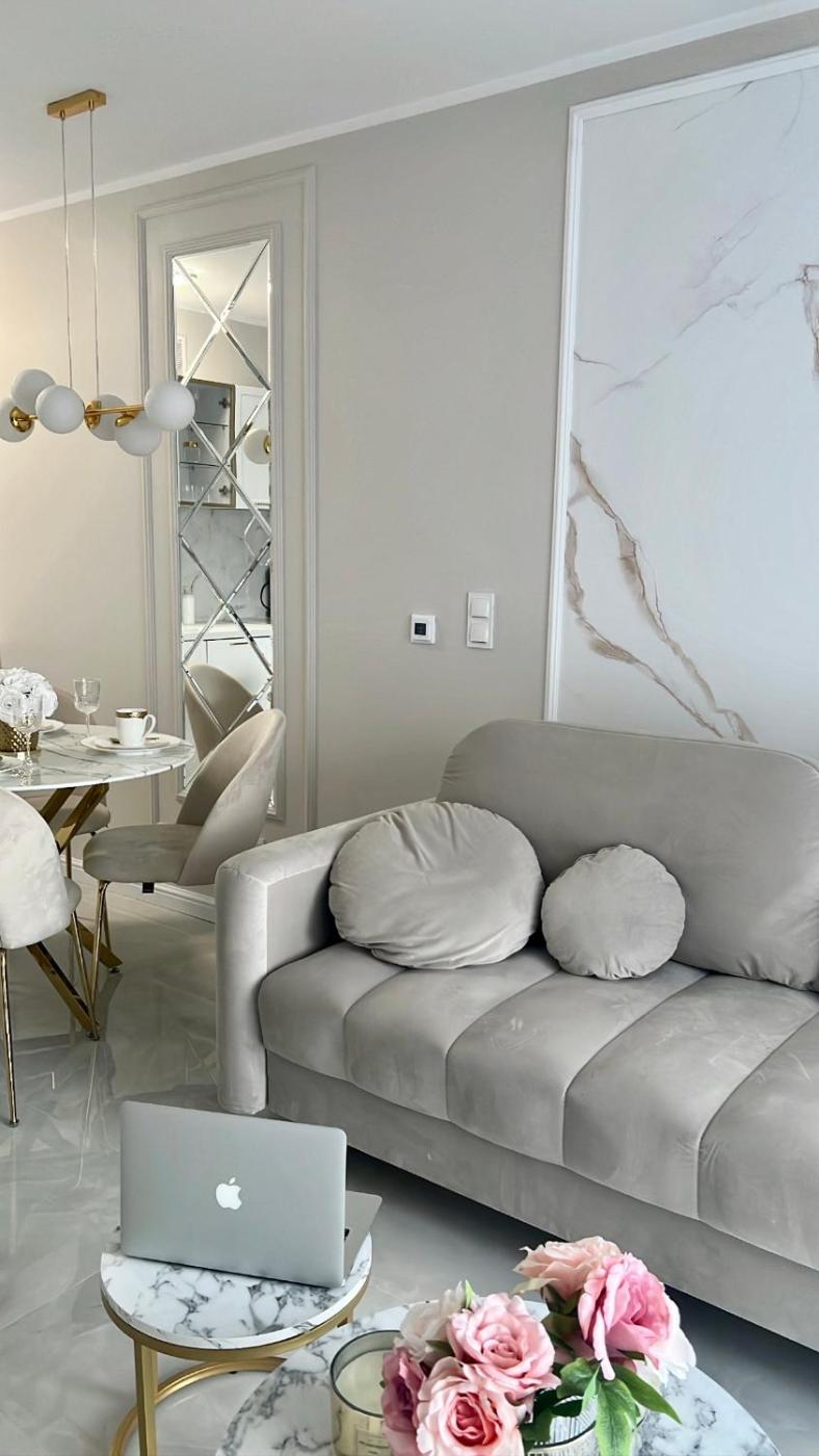 Oferta apartamentu obejmuje sypialnię (1), salon, aneks kuchenny z pełnym wyposażeniem, w tym lodówką i ekspresem do kawy, a także łazienkę (1) z prysznicem oraz suszarką do włosów. W apartamencie zapewniono ręczniki i pościel.