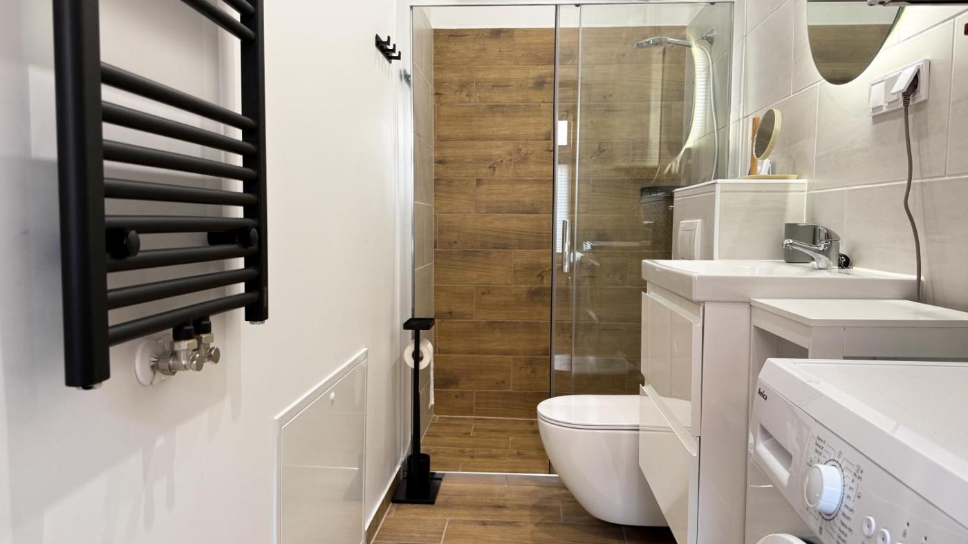 Apartament z 1 sypialnią. This apartment comes with 1 living room, 1 separate bedroom and 1 bathroom with a shower and a hairdryer. Guests can make meals in the kitchen that features a stovetop, a refrigerator, kitchenware and an oven. The apartment features a washing machine, a tea and coffee maker, a seating area, a dining area and a flat-screen TV. The unit has 4 beds. Apartament - 6 osobowy. Powierzchnia pokoju ok.: 45 mkw.