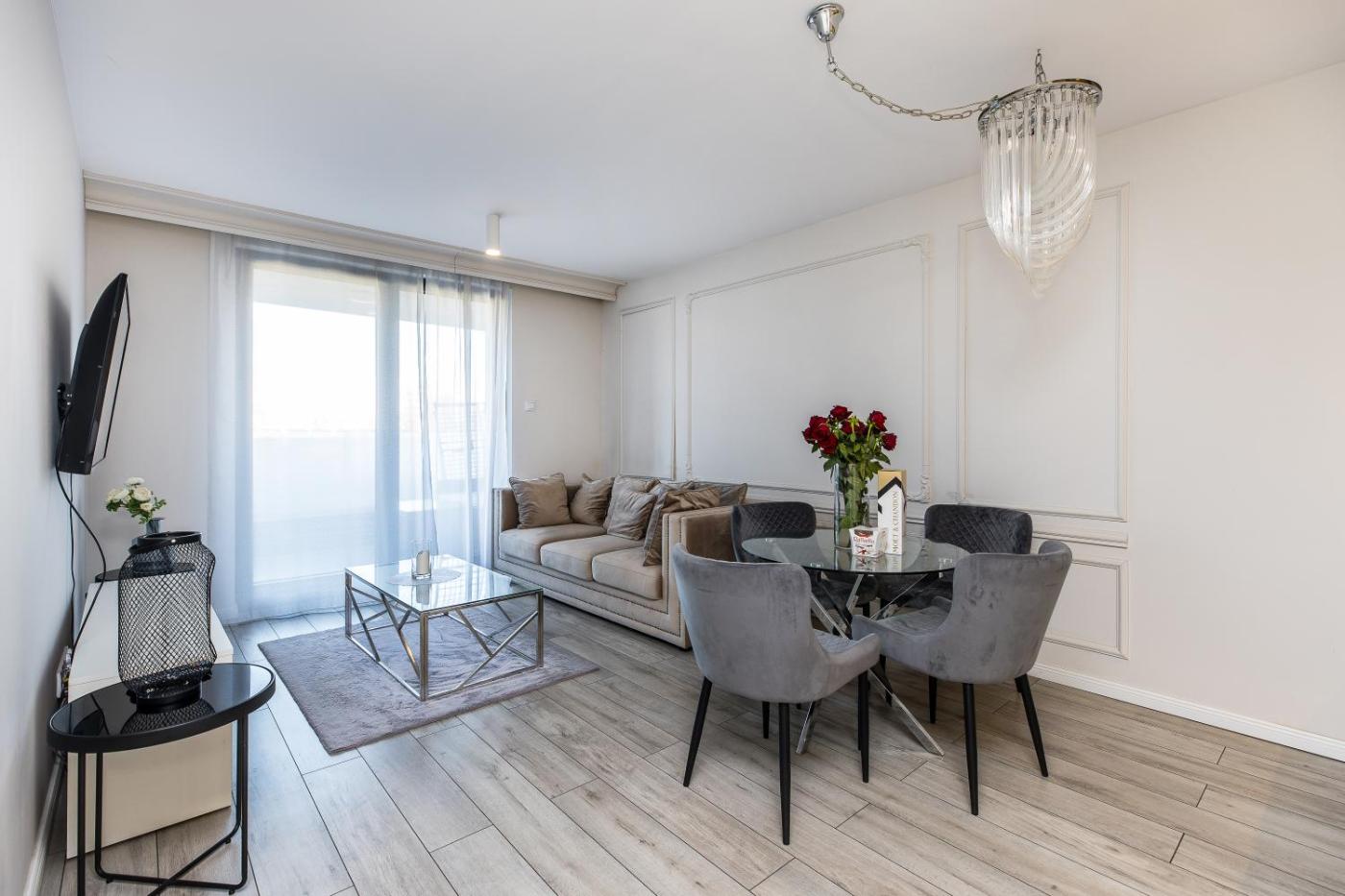 Apartament z 1 sypialnią. In the fully equipped kitchen, guests will find a stovetop, a refrigerator, a dishwasher and kitchenware. Boasting a terrace, this apartment also offers a washing machine, a private entrance and a flat-screen TV with cable channels. The unit has 1 bed. Apartament - 2 osobowy. Powierzchnia pokoju ok.: 50 mkw.