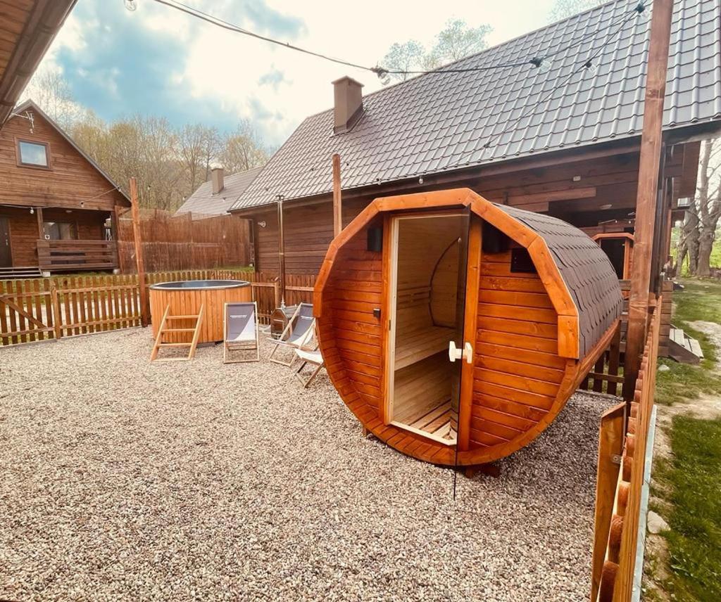 Domek typu Superior. This luxurious chalet has a hot tub, a spa bath and a sauna. This spacious chalet consists of 1 living room, 2 separate bedrooms and 1 bathroom with a shower and free toiletries. Guests will find a stovetop, a refrigerator, kitchenware and a microwave in the kitchen. The chalet also offers a barbecue. This chalet features a private entrance, soundproof walls, a TV and a terrace. The unit offers 7 beds. Domek - 8 osobowy. Powierzchnia pokoju ok.: 84 mkw. ;