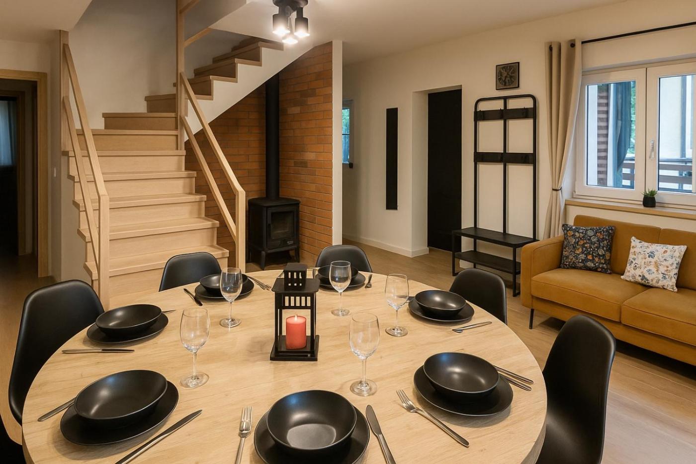 Dom z 4 sypialniami. This holiday home provides a fireplace. Guests will find a stovetop, a refrigerator, a dishwasher and kitchenware in the well-equipped kitchen. The holiday home also provides guests with a barbecue. This air-conditioned holiday home includes a flat-screen TV with streaming services, a shared bathroom as well as a terrace with garden views. The unit offers 6 beds. Dom wakacyjny - 9 osobowy. Powierzchnia pokoju ok.: 90 mkw.